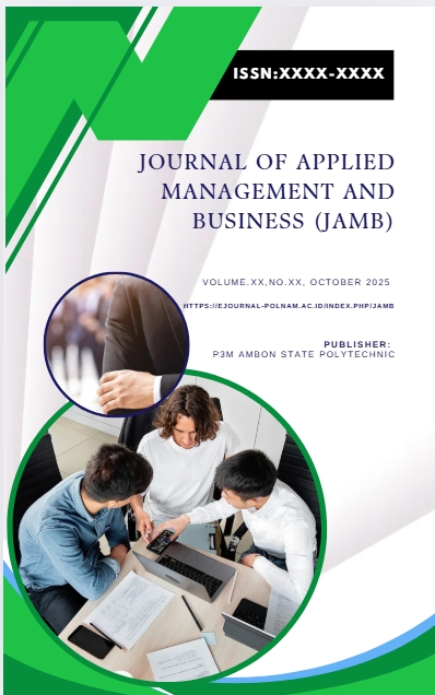 The Journal of Applied Management and Business (JAMB) is a scientific journal published by the Center for Research and Community Service at Ambon State Polytechnic under the management of the Department of Business Administration. JAMB serves as a publication medium for research results, conceptual studies, and empirical studies in the field of management and applied business, with a focus on the practical application of knowledge relevant to industry and society. The topics covered include marketing management, entrepreneurship, human resources, finance, organizational strategy, and small business development. JAMB is published twice a year (May and November), in both online and print formats (upon request), and implements a peer review process to ensure the quality and originality of each article. With the spirit of “Knowledge Applied for Real Impact,” JAMB is committed to being a scientific medium that is relevant, credible, and has a real impact on the development of management and business knowledge at the local, national, and global levels.