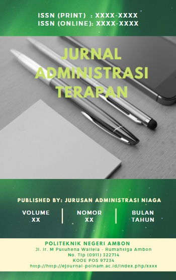 Jurnal Administrasi Terapan adalah Jurnal yang memberikan informasi ilmiah tentang perkembangan ilmu pengetahuan dan teknologi bidang Administrasi, Perkantoran, Kearsipan, Manajemen Pemasaran, Manajemen Keuangan, Manajemen SDM, Manajemen Operasional, Selling, Akuntansi, ecommerce dan komputer