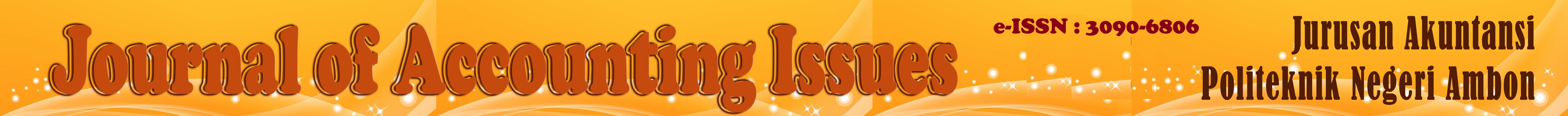 Journal Accounting Issues adalah jurnal yg mengupas dan mengedepankan issu aktual tentang akuntansi keuangan,akuntansi sektor publik,akuntansi manajemen,akuntansi pajak,akuntansi perbankan,Auditing,serta Anggaran.