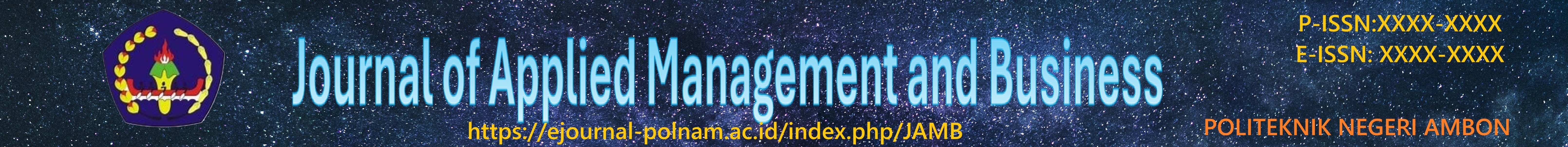 The Journal of Applied Management and Business (JAMB) is a scientific journal published by the Center for Research and Community Service at Ambon State Polytechnic under the management of the Department of Business Administration. JAMB serves as a publication medium for research results, conceptual studies, and empirical studies in the field of management and applied business, with a focus on the practical application of knowledge relevant to industry and society. The topics covered include marketing management, entrepreneurship, human resources, finance, organizational strategy, and small business development. JAMB is published twice a year (May and November), in both online and print formats (upon request), and implements a peer review process to ensure the quality and originality of each article. With the spirit of “Knowledge Applied for Real Impact,” JAMB is committed to being a scientific medium that is relevant, credible, and has a real impact on the development of management and business knowledge at the local, national, and global levels.